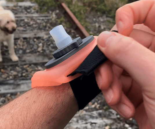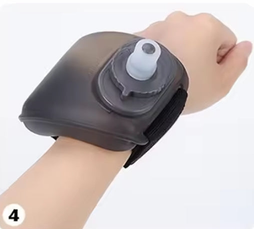 The wrist water bottle holds around 200ml (7oz) - just enough for quick dips during runs, workouts, or hikes without adding bulk or weight.